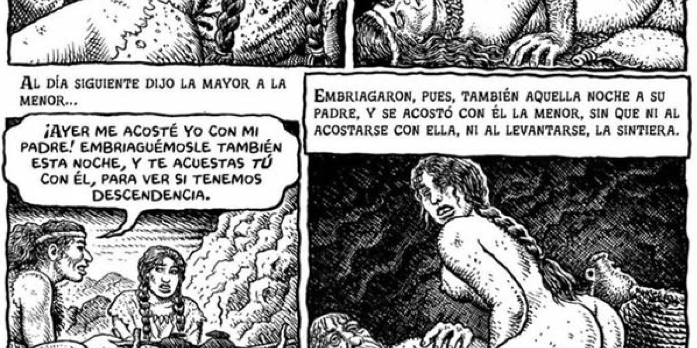 Y después de, un poco por casualidad, leer el Génesis ilustrado de Robert Crumb te das cuenta de que la tradición católica nos ha robado la Biblia. Aunque Crumb recibió una educación católica, la realidad de su país es protestante. La relación del protestantismo con la Biblia es muy diferente a la nuestra. La relación privada y la lectura e interpretación personal de los textos sagrados que predica el protestantismo convierte a la Biblia en un texto que se conoce mucho mejor en ese ámbito.