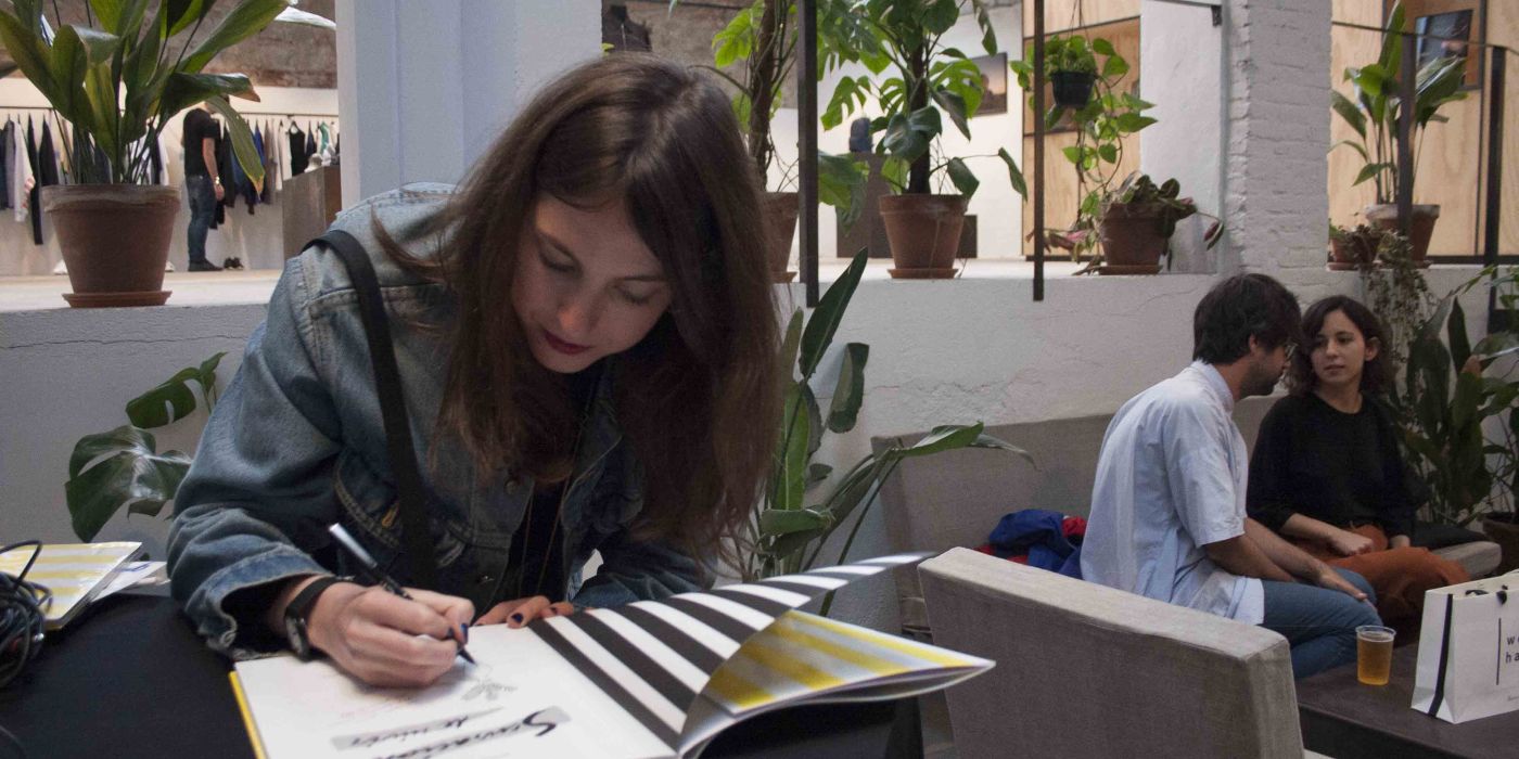 El viernes pasado, Mirena Ossorno presentó su cómic Sensación de vivir en Wer-Haus. Este es el primer trabajo narrativo largo de la autora, ha apostado por ella la editorial Fulgencio Pimentel que poco a poco está construyendo un catálogo imprescindible tanto de autores locales como internacionales. Mirena es una dibujante de linea clara con una composicion de página elegante, y aunque sus páginas den una sensación primera de frialdad chocamos enseguida con una tesis certera y llena de humor negro sobre la modernidad. Con este trabajo la autora se ha convertido en una rara avis entre sus contemporaneas que la aleja de un slice of life costumbrista y amable hacia terrenos mucho más oscuros.